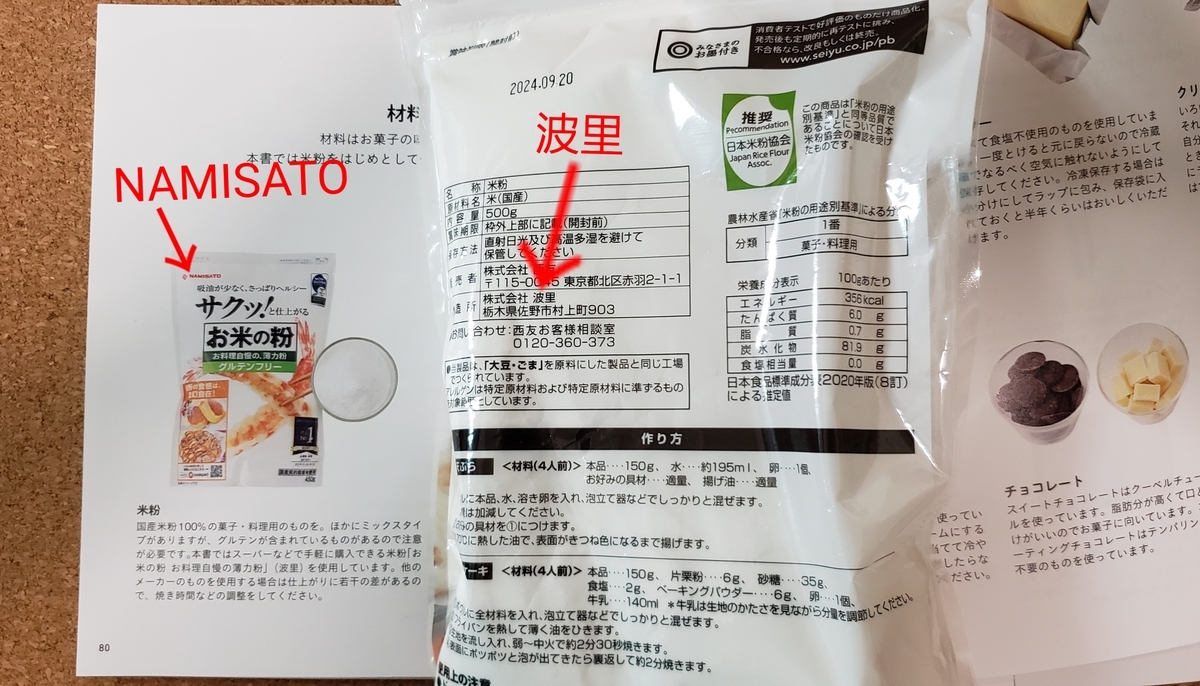 そして米粉は近所のスーパーマーケットに行ったときにそこにあったのがプライベートブランドの物1択だったのでそれを買ったのだけど、とりあえずグルテンフリーだし、本で紹介しているメーカーで作られているようだし、大丈夫そうな雰囲気。